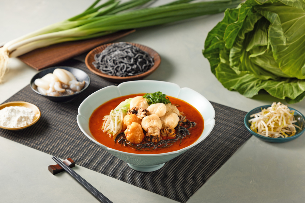 「樂蝦拉麵」更推出台灣限定版「花黑pun」口味拉麵,以招牌蝦皇湯為基底,採用老母雞及雞腳強化天然膠與濃醇,並將整尾老虎蝦烘烤8小時後打碎加入,麵體部分則選用特製極細墨魚拉麵,整碗享用海味、東洋味十足!喜歡海鮮的朋友不錯過~