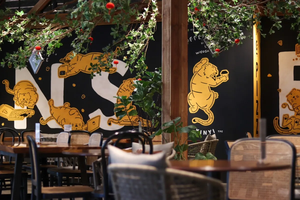 N.S.F.W.特別找來知名咖啡杯插畫家WHOSMiNG合作,呈現牆上幾幅慵懶的老虎插畫,他們就和店裡顧客一樣,忙裡偷閒的樣子簡直讓人感同身受~此外,店裡一系列保溫瓶、馬克杯和杯墊等等,這些周邊設計也都出自於WHOSMiNG之手。