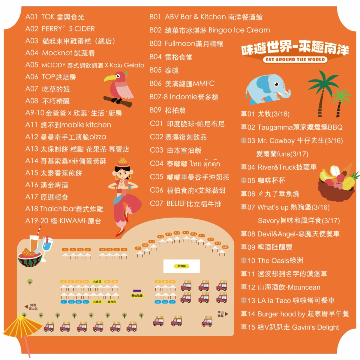 週末登場的東南亞美食市集為「有趣市集」舉辦的「Eat Around the World 味遊世界-來趣南洋」,於3/16、3/17週末兩天登場圓山花博花海廣場。集結全台56間人氣店家,提供泰國、新加坡、越南、大馬等地的特色料理,讓各位饕客們不用搭飛機出國,也能來趟南洋美食巡禮!